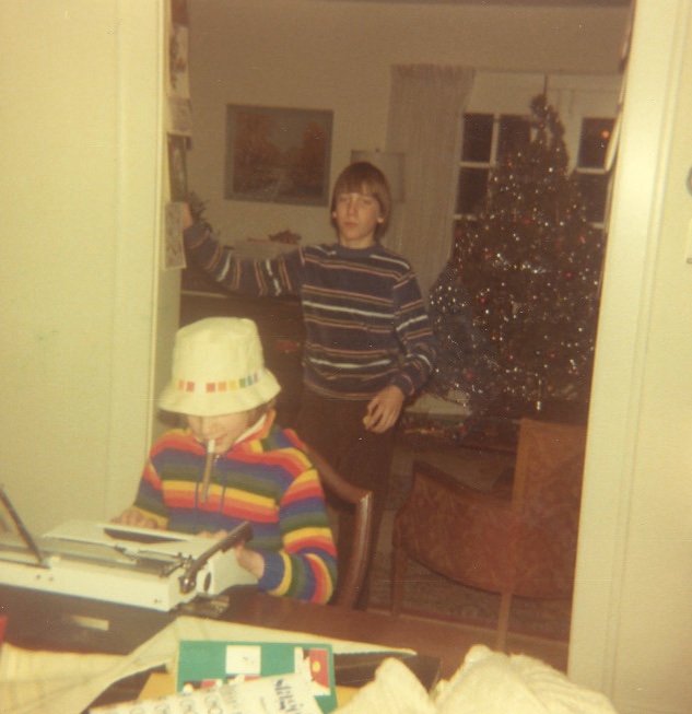Here’s eight-ish-year-old me typing the Kommers Family Newspaper, with a cameo appearance by my brother. More recently, I participated in Literary Cape Ann’s 2025 Holiday Book & Author Fair in Rockport, Massachusetts.